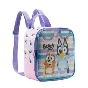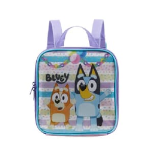 Produzida em poliéster resistente e estampado. Painel frontal PVC Cristal . Compartimento com revestimento em material que ajuda a manter o frescor dos alimentos por mais tempo. Zíper com puxadores simples . Alças reguláveis com faixa para acoplar oproduto na haste da mala de rodinhas. Produto certificado. Lancheira Bluey X - 11894 - Artigo Escolar Ean: 7899768849869