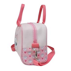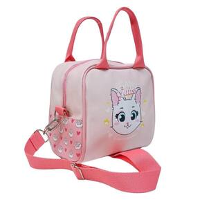 Especificações: Altura: 18,5cm largura: 21,5cm comprimento: 9,5cm profundidade: 19,5cm Bolsos: 1 principal Material: tecido sintético Cor: rosa Alças: 1 de mão, 1 transversal regulável e removível Marca: zona criativa Modelo: eu amo gatos