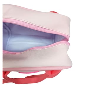 Especificações: Altura: 18,5cm largura: 21,5cm comprimento: 9,5cm profundidade: 19,5cm Bolsos: 1 principal Material: tecido sintético Cor: rosa Alças: 1 de mão, 1 transversal regulável e removível Marca: zona criativa Modelo: eu amo gatos