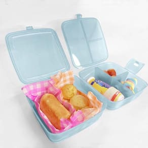 Com a lancheira dupla de 4 divisórias, você terá o poder de levar consigo uma verdadeira explosão de sabores aonde quer que vá.