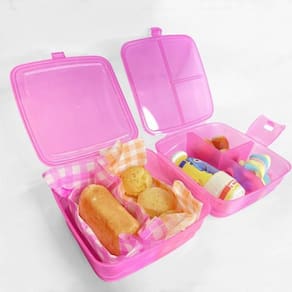 Lancheira dupla multiuso com quatro divisórias translucida Lancheira dupla com divisória Com a lancheira dupla de 4 divisórias, você terá o poder de levar consigo uma verdadeira explosão de sabores aonde quer que vá. Graças ao seu design inteligente, suas refeições permanecerão intactas e separadas, sem misturar sabores ou causar bagunça. Cada divisória é pensada cuidadosamente para preservar a qualidade e o frescor dos alimentos, permitindo que você desfrute de uma refeição completa e equilibrada em qualquer momento do dia. Além disso, a lancheira dupla de 4 divisórias é fabricada com materiais duráveis e de alta qualidade, garantindo sua resistência e praticidade no uso diário. Seu design compacto e leve torna fácil transportá-la para o trabalho, escola ou academia. Medidas: 14,5 x 9 cm Obs: as cores serão enviadas conforme Marca: Não Informado Ean: 7897839702594