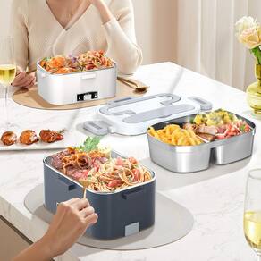 lancheira elétrica para adultos, lancheira elétrica para homens, lancheira aquecida, lancheira elétrica, aquecedor de alimentos, lancheira elétrica portátil - 2 recipientes elétricos aquecidos para escolher – Estes recipientes removíveis para o aquecedor elétrico de alimentos da lancheira têm compartimento e recipientes individuais para escolher. Abrace a versatilidade da lancheira elétrica para se adequar às suas escolhas de refeição, oferecendo a melhor conveniência do almoço diário! Selecione o recipiente de almoço adequado para combinar com sua refeição cuidadosamente preparada! Caixa para adultos - Preta - 15 minutos de aquecimento super rápido – a lancheira de 100 W tem lancheira elétrica de aquecimento super rápido! Com o dobro da capacidade de aquecimento em comparação com os modelos padrão de 60 W, desfrute de refeições quentes e deliciosas em apenas 15 minutos. Aproveite suas refeições quentes com rapidez e facilidade! (Para caminhões e carros, aproveite um tempo de aquecimento de 20 a 30 minutos para suas refeições) - Tampa de compartimento atualizada à prova de vazamento – A lancheira elétrica para adultos tem tampa de compartimento e quatro fechos, garantindo os recursos à prova de vazamento. Sem vazamentos ao carregar sua lancheira elétrica para homens ou mulheres. - Lancheira aquecida 3 em 1 – seja em casa (110 V), no seu carro (12 V) ou caminhão (24 V), desfrute de deliciosas refeições quentes em movimento. Desfrute de refeições quentes a qualquer hora, em qualquer lugar, e diga adeus aos sanduíches frios! Abrace a conveniência do aquecimento instantâneo das refeições! - Design elegante – Nossa lancheira elétrica portátil tem um design exterior elegante e exclusivo. Quando o aquecimento terminar, basta pressionar o controle ON/OFF na frente sem desconectar a tomada. Em climas mais frios, mantenha o calor ligando o controle ON/OFF quando sua refeição esfriar.