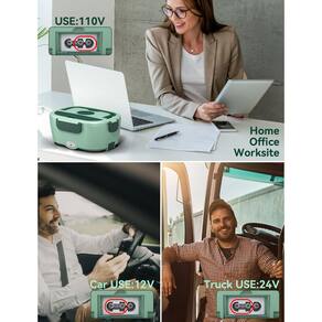 - Aquecedor de alimentos 3 em 1: você sempre tem refeições frias no trabalho, no carro ou em movimento? Se sim, então nossa lancheira aquecida portátil é feita sob medida para você. A lancheira elétrica pode ser aquecida em carros, caminhões, escritório de trabalho e assim por diante