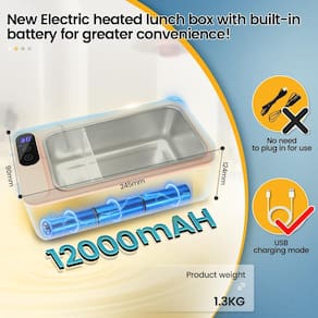 - ?Preservação inteligente do calor e aquecimento temporizado?A lancheira elétrica sem fio oferece várias opções de tempo de aquecimento (de 10 a 60 minutos), e a função de preservação de calor oferece várias opções de tempo de preservação de calor (de 30 minutos a 4 horas) para atender às suas diferentes necessidades.