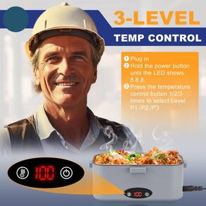 Descrição otimizada do produto: Aquecedor de alimentos conveniente e eficiente para estilos de vida ocupados. A lancheira elétrica é a solução perfeita para pessoas ocupadas que precisam de uma maneira confiável e rápida de aquecer suas refeições em movimento. Com 3 níveis de temperatura — 60 °C, 80 °C e 100 °C — você pode selecionar a configuração de calor ideal com base no tipo de alimento que está aquecendo. Basta conectar, escolher a configuração e, dentro de 25 minutos, sua refeição estará pronta para desfrutar! Aquecimento portátil e versátil para qualquer situação, esteja você no escritório, no seu carro ou na estrada, este aquecedor de alimentos portátil foi projetado para atender às suas necessidades. Vem com 3 cabos de alimentação (12 V para carro, 24 V para caminhão e 110 V para uso no escritório), garantindo que você possa aquecer sua comida não importa onde você esteja. O elemento de aquecimento atualizado de 100 W garante uma experiência de aquecimento rápida e uniforme, para que você possa desfrutar de uma refeição deliciosa sem a longa espera. Bolsa de transporte durável e conveniente. A lancheira vem com uma bolsa de transporte especialmente projetada feita de tecido grosso e resistente a rugas. A bolsa possui zíperes reforçados para maior durabilidade, juntamente com um bolso de malha para armazenar pequenos itens como chaves ou cartões. Além disso, os compartimentos extras permitem que você armazene molhos, lanches ou frutas, tornando esta lancheira não apenas prática, mas também organizada. Perfeita para escritório, viagens e muito mais. Ideal para trabalhadores de escritório, caminhoneiros, funcionários de construção ou qualquer pessoa que passe longas horas longe de casa, esta lancheira ajuda você a desfrutar de refeições quentes e caseiras onde quer que você vá. Com controles de temperatura fáceis de usar, um processo de aquecimento rápido e uma solução de energia versátil, este é o aquecedor de alimentos portátil definitivo. Satisfação do cliente garantida Garantimos a qualidade do nosso produto. Se você tiver dúvidas ou problemas, nossa equipe dedicada de atendimento ao cliente está aqui para ajudá-lo. Nós nos esforçamos para garantir que você tenha a melhor experiência possível com nossa lancheira elétrica, e agradecemos qualquer feedback para ajudar a melhorar nosso produto. - 3 níveis de temperatura para a lancheira aquecida para homens: os passos são: ? Conecte. ? Segure o botão liga/desliga até que o LED mostre 8.8.8. para entrar no modo de espera. ?Toque no botão do termômetro uma vez significa escolher o nível P1 e a comida aquecerá até 60 °C; tocar duas vezes significa escolher o nível P2 e aquecerá até 80 °C; tocar três vezes significa escolher o nível P3 e aquecerá até 100 °C. Observação: durante o processo de aquecimento, exibirá alternadamente o nível selecionado e a temperatura em tempo real. - Aquecimento rápido com potência de 100 W: a lancheira elétrica atualizada para homens aquece alimentos rapidamente com potência de 100 W, atingindo temperaturas ideais em apenas 25 a 35 minutos. Aproveite sua refeição mais rápido sem esperar muito, tornando-a perfeita para profissionais ocupados, caminhoneiros ou qualquer pessoa em movimento. - Ampla compatibilidade 3 em 1 (12V/24V/110V): o aquecedor elétrico de alimentos para lancheira vem com 2 cabos de alimentação para atender a todas as suas necessidades. 110 V para uso no escritório, 24 V para caminhões e 12 V para carros. Esteja você no trabalho, na estrada ou em seu veículo, desfrute de uma refeição quente e fresca em qualquer lugar. - Bolsa de transporte atualizada e compartimentos extra: a lancheira aquecida portátil possui uma bolsa de transporte durável e espessa com zíperes reforçados para maior longevidade. Inclui um bolso de malha embutido para pequenos itens (chaves, cartões) e um compartimento superior extra de 0,8 L para molhos ou molhos, além de uma caixa de 0,45 L para frutas, nozes ou lanches. - Portátil e conveniente para estilos de vida ocupados: a lancheira elétrica para mulheres e homens, perfeita para trabalhadores de escritório, caminhoneiros e funcionários de construção que precisam de uma maneira portátil e confiável de aquecer alimentos. Aqueça e desfrute de suas refeições onde quer que a vida o leve, esteja viajando, em uma pausa ou trabalhando remotamente. - Atendimento ao cliente profissional: Se você encontrar algum problema com o produto ou precisar de ajuda com a configuração, nossa equipe de atendimento ao cliente está pronta para ajudar. Estamos comprometidos em garantir sua satisfação e fornecer soluções para uma experiência tranquila.