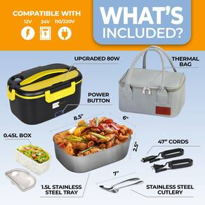 Apresentamos a lancheira elétrica da FORABEST - uma solução inovadora premium projetada para aqueles que valorizam a conveniência e se recusam a comprometer a qualidade de uma refeição caseira. Esta excepcional lonchera térmica para comida caliente atende tanto a profissionais de colarinho azul quanto a trabalhadores de escritório ocupados que buscam uma maneira confiável de desfrutar de refeições quentes e deliciosas a qualquer hora, em qualquer lugar. A lancheira aquecida FORABEST é projetada para atender às diversas necessidades dos estilos de vida modernos. Equipada com várias opções de energia — 12 V, 24 V, 110 V e 220 V — esta lancheira versátil de voltagem universal equipada com um botão de energia conveniente, garante uma usabilidade perfeita se você estiver na estrada, no escritório ou até mesmo em casa. Cada caixa vem com generosos cabos de alimentação de 119 cm, acomodando várias configurações. Dentro, você encontrará um recipiente de aço inoxidável 304 1,5L e uma caixa de plástico de 0,45 L, projetada para manter suas refeições frescas e segregadas. Estes recipientes são perfeitos para preservar os sabores de seus pratos favoritos, tornando este aquecedor de almoço a escolha ideal para aqueles que amam variedade em seus almoços. Com a conveniência adicional de utensílios de tamanho grande incluídos, a lancheira aquecida FORABEST para adultos é realmente um pacote completo. Nossa lancheira elétrica para adultos é um excelente presente para homens que apreciam funcionalidade e estilo. Se você está procurando um aquecedor portátil de lancheira ou um presente atencioso para um motorista de caminhão ou trabalhador de construção, esta lancheira térmica para homens certamente impressionará. Abrace a conveniência de um micro-ondas portátil com a lancheira elétrica FORABEST Seu design eficiente garante que suas refeições estejam prontas para comer sempre que houver fome. Os aquecedores elétricos de alimentos são ideais para manter seu almoço quente, tornando-os um companheiro perfeito para longas viagens ou dias úteis exigentes. Escolha a lancheira térmica FORABEST para uma mistura de praticidade, durabilidade e estilo. Experimente o conforto de desfrutar de uma refeição quente sem o incômodo dos métodos tradicionais de reaquecimento. Este produto não é apenas um aquecedor de alimentos; é uma atualização de estilo de vida para aqueles que exigem mais de suas rotinas na hora do almoço. - Refeições caseiras quentes em minutos: diga adeus aos almoços frios e fast food. Nossa lancheira elétrica atualizada de 80 W (lancheira aquecida) aquece rapidamente as refeições em apenas 15 minutos, oferecendo uma alternativa conveniente e sem complicações a um micro-ondas portátil. Não há necessidade de soluções de reaquecimento inconvenientes! - Botão universal de energia e liga/desliga: tensão universal para uso mundial em qualquer tomada de parede. Com um botão liga/desliga iluminado e cabos de alimentação extralongos com certificação de segurança de 119 cm. Ideal para aquecimento conveniente na estrada, uma alternativa prática a um (micro-ondas portátil para carro) e o aquecedor de almoço ideal portátil para o trabalho. - Qualidade premium durável e à prova de vazamento: feita de materiais duráveis, de alta qualidade e sem BPA, esta lancheira elétrica para homens e mulheres inclui fechos mais grossos e robustos projetados para uso diário sem quebrar. Esta lancheira com aquecimento automático está equipada com um anel de silicone à prova de vazamento que não falha, utensílios grandes de tamanho de jantar (não os pequenos), tornando-a perfeita para ensopados e sopas. - Capacidade generosa e fácil de limpar: possui uma bandeja satisfatória de aço inoxidável de 1,5 L mais um compartimento de 0,45 L para separar arroz, vegetais ou saladas. A bandeja e os utensílios SS podem ser lavados na lava-louças ou enxágue rápido para limpeza sem esforço. Não lave a caixa externa, basta limpar com um pano levemente úmido. Esta lancheira térmica de alta qualidade para homens e mulheres é prática e conveniente para refeições diárias. - Kit premium completo de uma marca norte-americana confiável – comprometida com a qualidade e a excelente satisfação do cliente. A lancheira quente FORABEST para adultos (lancheira aquecida) inclui uma bolsa de transporte com isolamento premium, bandeja de aço inoxidável de 1,5L, utensílios grandes, cabos de 5 x 119 cm, fornecendo tudo o que é necessário para uma refeição quente e saudável em qualquer lugar. Um ótimo presente para homens e o presente ideal para mulheres