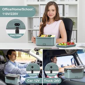 Suporta carros 12 V/caminhão 24 V + uso doméstico 110 V/220 V. Removível: o recipiente de aço inoxidável e a camada de frutas de plástico são removíveis, portanto, muito fáceis de limpar. Portátil: a aparência elegante e a alça portátil permitem que você carregue comida com você. E equipamos uma bolsa térmica portátil. Observação: 1. Não coloque o dispositivo na geladeira para armazenamento frio. 2. A tampa do escapamento deve ser aberta antes do aquecimento para evitar que a pressão de vapor dentro da lancheira faça com que o produto deforme e não possa ser utilizado normalmente. 3. Não mergulhe a base de aquecimento em água para limpeza. 4. Se a comida tiver sido deixada de lado por um longo tempo, sugere-se adicionar um pouco de água à comida e depois ligar ao calor, para que a comida fique mais macia. - Funções de aquecimento atualizadas de 100 W?Não é necessário procurar refeições no micro-ondas e abraçar a alegria de desfrutar de uma refeição caseira quente e deliciosa. Nossa lancheira elétrica adota o aquecimento de temperatura constante PTC atualizado e usa ciclo térmico de 100W de alta potência, baixo consumo e alta eficiência, aquecendo seu almoço na velocidade mais rápida em apenas 20 a 25 minutos, mantendo a umidade e o frescor dos alimentos. - ?Lancheira elétrica 4 em 1 atualizada? Não é necessário esperar na fila para aquecer, agora basta ligar e aquecer sua comida com a lancheira de aquecimento elétrico em casa/escritório usando os cabos de alimentação de 110V/220V ou no carro/caminhão usando os cabos de alimentação de 12V/24V. Mantenha o aquecimento constante ao conectar, sempre servindo uma refeição quente. - ?Design exclusivo atualizado com propriedade intelectual?Projetado por Herrfilk e propriedade intelectual de design aplicado nos Estados Unidos. O design de camada dupla à prova de vazamento e a capa mais forte integrada são perfeitos para embalar uma variedade de alimentos em porções saudáveis e alcançar o equilíbrio nutricional. - ?Recipiente de alimentos atualizado de 1,8 L + recipiente de frutas de 0,7 litro?Projetado com capacidade de 1,8 L, recipiente de aço inoxidável 304 para alimentos. Desfrute de sopas e sopas com confiança como a capa segura e à prova de vazamentos da nossa lancheira elétrica. Com o recipiente de frutas PP de grau alimentício de 0,7L, permite que você mantenha vários itens de alimentos separados e organizados seus utensílios nele. - ?Recurso atualizado e material de segurança?Nossa lancheira aquecida prioriza sua saúde e o meio ambiente. O sistema de aquecimento atualizado e o revestimento de alta qualidade garantem durabilidade e custo-benefício. O design seguro para lava-louças e a bandeja de aço inoxidável preservam o sabor das suas refeições. Feita de material premium de qualidade alimentar, é a melhor lancheira térmica para embalar alimentos saudáveis. Desfrute de alimentos quentes e saudáveis. - ?Serviço pós-venda a qualquer momento?Se você achar que a lancheira não pode ser aquecida ou tiver outros problemas após recebê-la, sinta-se à vontade para entrar em contato conosco e forneceremos uma garantia de devolução do dinheiro em 30 dias e 12 meses de substituição.