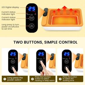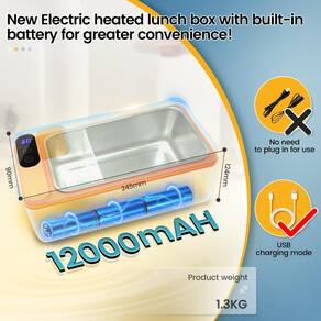 - ?Preservação inteligente do calor e aquecimento temporizado?A lancheira elétrica sem fio oferece várias opções de tempo de aquecimento (de 10 a 60 minutos), e a função de preservação de calor oferece várias opções de tempo de preservação de calor (de 30 minutos a 4 horas) para atender às suas diferentes necessidades.