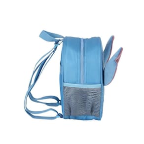 Lancheira térmica com estampa frontal, alça de mão, alça de costas reguláveis, fechamento em zíper e etiquetas personalizadas.