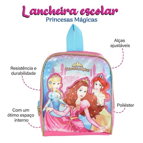 Lancheira escolar princesas mágicas Com um toque encantador, essa lancheira será a companheira perfeita para a hora do lanche na escolaa lancheira conta com uma cor rosa vibrante e estampa das princesas mágicas, além de detalhes dourados para dar ainda mais estilo e magia.Seu design é compacto, podendo ser levada para qualquer lugar que você vá, desde a escola até uma viagem ou passeio. Com um ótimo e espaçoso espaço interno, é perfeita para carregar seu lanche para todos os lugares, além das alças ajustáveis que garantem conforto no transporte .Confeccionada com materiais de alta qualidade, garante que seu lanche ficara seguro, proporcionando resistçencia e durabilidade para que possa ser Utilizado sem preocupações. Cuidados-para a limpeza, utilizar apenas pano úmido e sabão neutro;-evitar colocar excesso de peso no produto para não forçar os zíperes e costuras; especificações:material: poliésterdimensões: alt.: 28cm x larg.: 23cmpeso: aprox. 180gcores: rosa com detalhes em dourado contém:01 lancheira escolar princesas mágicas Marca: Não Informado