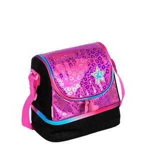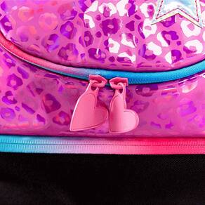 Lancheira escolar com estampa exclusiva, tag identificador, interior resistente a liquidos, alça carona e etiquetas personalizadas.