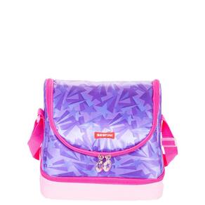 Lancheira escolar com estampa exclusiva, tag identificador, interior resistente a liquidos, alça carona e etiquetas personalizadas.