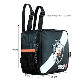 A hora do lanche nunca foi tão divertida com a lancheira do vasco feita especialmente para os pequenos fanáticos pelo vascão, seu filho vai adorar levar seu lanche para a escola com o orgulho vasaíno em destaque. Detalhes especiais - forro interno em peva, que mantém os alimentos frescos por mais tempo e um bolso lateral prático para pequenos itens. - compartimento principal amplo com elástico interno para melhor organização dos itens. - bolso lateral em tela para garrafa, sempre à mão para garantir a hidratação. - alça regulável para conforto no transporte e tira especial para encaixe seguro no carrinho da mochila. - design esportivo com estampa exclusiva e logo em patch de pvc vincado que representa toda a paixão pelo gigante da colina. - zíper resistente com puxadores em corda para facilitar a abertura e o fechamento. Perfeita para acompanhar o ritmo da escola com praticidade, conforto e muita personalidade Dimensões: - largura: 21cm - altura: 19cm - comprimento: 10cm Peso: 200gr Cuidados: - guarde em um local seco e arejado evitando locais úmidos. - evite colocar excesso de peso no produto para não forçar os zíperes e costuras. - proteja os objetos cortantes e/ou pontiagudos evitando o contato direto com o produto. - evitar altas temperaturas. - cores claras poderão manchar quando em contato com outros objetos ou roupas de cores pigmentadas. Dicas de limpeza: - para a limpeza utilize apenas pano úmido com sabão neutro. - não mergulhar na água e não utilizar componentes químicos, solventes ou alvejantes. - não deixar de molho e secar a sombra. Marca: Não Informado