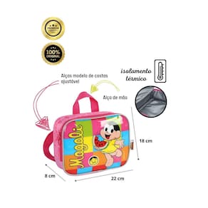 Encaixe para Mochila de Rodinhas: A lancheira possui um sistema de encaixe prático, que permite fixá-la em mochilas com rodinhas, facilitando o transporte.