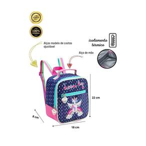 Confeccionada em Poliéster Isolamento térmico Alça de mão e de costas Design exclusivo Puxadores personalizados Fechamento em zíper Medidas aproximadas: Altura: 22 cm Largura: 18 cm Comprimento: 8 cm CUIDADOS: - Guarde em um local seco e arejado evitando locais úmidos. - Evite colocar excesso de peso no produto para não forçar os zíperes e costuras. - Proteja os objetos cortantes e/ou pontiagudos evitando o contato direto com o produto. - Evitar altas temperaturas. - Cores claras poderão manchar quando em contato com outros objetos ou roupas de cores pigmentadas.