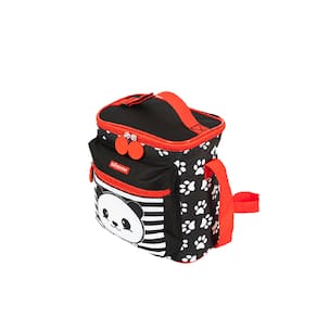 Feita em poliéster resistente e impermeável com zíper duplo e alça carona para fixar na mochila, possui bolso frontal com estampa temática, divisórias internas para lanche, frutas e potinho, além de tag de identificação personalizada.