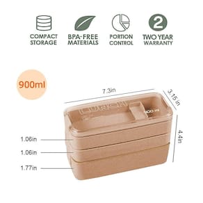 -?Lancheira reutilizável de fibra de trigo?Plástico PP de qualidade alimentar e fibra de trigo sem BPA são super saudáveis e feitos para durar. Ele cria um ambiente de alimentação seguro e saudável para você e sua família. O espaço é grande o suficiente para acomodar a comida, permitindo que você almoce por uma semana. Além disso, você pode limpar profundamente os recipientes da caixa na máquina de lavar louça.