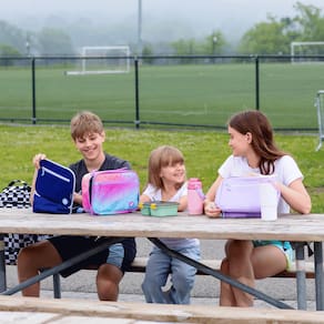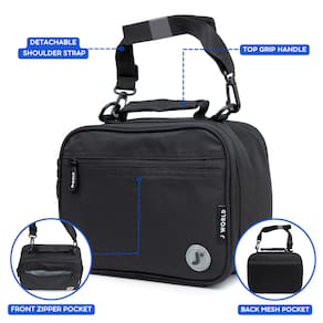 Disponível em uma ampla variedade de padrões coloridos e estampas vibrantes, esta lancheira é perfeita para crianças que precisam levar o almoço para a escola. A lancheira J World Cody é feita de tecido de poliéster e apresenta uma forma retangular clássica com uma estampa colorida em toda parte, uma alça superior acolchoada e uma alça de ombro ajustável que oferece opções de transporte versáteis. Esta lancheira inclui um fecho com zíper e um compartimento principal totalmente isolado que oferece bastante espaço de armazenamento para sanduíches, lanches e bebidas. Um bolso externo com zíper fornece armazenamento adicional para utensílios, guardanapos e outros itens pequenos.