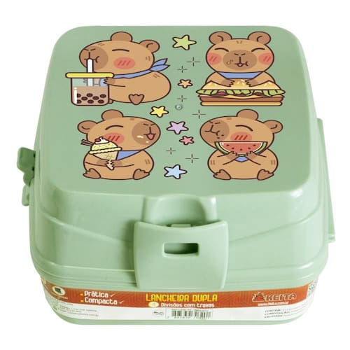 Lancheira dupla com divisória - estampa de animais fofos, compacta e práticaleve seus lanches com mais organização, praticidade e estilo com a lancheira dupla com divisórias. Seu design inteligente garante que cada alimento fique no seu espaço, preservando sabor e frescor, enquanto sua estampa divertida de animais fofos traz um toque de alegria ao dia a dia.Fabricada em plástico resistente, possui travas seguras e 4 divisórias internas, ideais para separar sanduíches, frutas, biscoitos e sobremesas sem misturar os sabores. Compacta e leve, é perfeita para levar à escola, ao trabalho, em passeios ou viagens, mantendo sempre tudo organizado e protegido