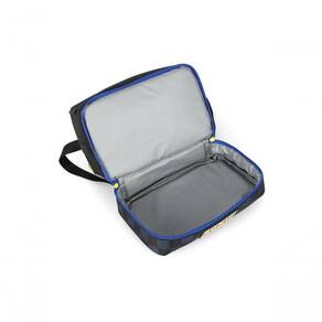 Entre seus diferenciais, destacam-se o logo emborrachado, a alça regulável para uso transversal ou lateral, e o design duplo, que conta com espaço inferior com zíper, permitindo separar alimentos ou utensílios de forma prática. O zíper personalizado complementa o acabamento de qualidade e o visual marcante da linha licenciada Sonic Up4you.