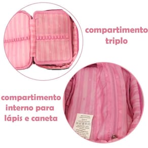 O estojo conta com um bolso interno, ideal para armazenar itens pequenos e manter tudo no lugar. O forro interno rosa traz um toque de charme, enquanto o acabamento em preto confere elegância. Perfeito para quem valoriza tanto a funcionalidade quanto o estilo, o Estojo Box Rebecca Bonbon é ideal para o dia a dia, seja na escola, trabalho ou na organização pessoal.
