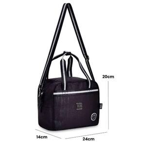 Leve praticidade e estilo para o seu dia a dia com a Lancheira Térmica Rebecca Bonbon Clio! Ideal para quem busca praticidade, ela possui alça regulável e reforçada, garantindo conforto e durabilidade. Com design moderno na cor preta e detalhes prateados, essa lancheira se destaca pelo seu toque de glamour, com um delicado acabamento em glitter que adiciona um charme especial.