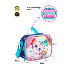 Design exclusivo: Estampa da Gatinha Cindy com cores vibrantes, tornando a lancheira ainda mais mágica. Fechamento por zíper: Facilita o acesso ao compartimento principal. Alça de mão e costas: Versatilidade para carregar da forma que preferir. Isolamento térmico: Mantém os alimentos frescos por mais tempo. Material resistente: Garante durabilidade e resistência no dia a dia.