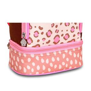 - designer personalizado onça. - com orelhinhas. - possui 2 compartimentos. - 1 alça de punho. - 100% poliéster. - alça traseira para acoplar a mochila. - 1 alça de punho. - com revestimento interno térmico para conservar bebidas e lanches por muito mais tempo.