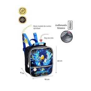 Confeccionada em Poliéster Isolamento térmico Alça de mão e de costas Design exclusivo Puxadores personalizados Fechamento em zíper Medidas aproximadas: Altura: 22 cm Largura: 8 cm Comprimento: 18 cm CUIDADOS: - Guarde em um local seco e arejado evitando locais úmidos. - Evite colocar excesso de peso no produto para não forçar os zíperes e costuras. - Proteja os objetos cortantes e/ou pontiagudos evitando o contato direto com o produto. - Evitar altas temperaturas. - Cores claras poderão manchar quando em contato com outros objetos ou roupas de cores pigmentadas.