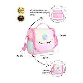 Produzido em poliéster Possui alças transversal Possui alça de mão Material interno térmico Ziperes com puxadores personalizados Estampa estilizada Não acompanha potinho e garrafinha Dimensões: 22 x 20 x 13 cm alt x larg x prof ; CUIDADOS: -guarde em um local seco e arejado evitando locais úmidos. - Evite colocar excesso de peso no produto para não forçar os zíperes e costuras. - Proteja os objetos cortantes e/ou pontiagudos evitando o contato direto com o produto. - Evitar altas temperaturas. - Cores claras poderão manchar quando em contato com outros objetos ou roupas de cores pigmentadas. DICAS DE LIMPEZA: - Para a limpeza utilize apenas pano úmido com sabão neutro. - Não mergulhar na água e não utilizar componentes químicos, solventes ou alvejantes. - Não deixar de molho e secar a sombra. Marca: Não Informado