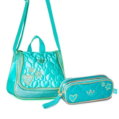 Atenção: imagens meramente ilustrativas.Contem:01 un - lancheira térmica azul.01 un - estojo duplo azul.A linha sweet queen combina o rosa, lilás e verde delicados com o poder do dourado, afinal, quem é que não gostaA lancheira da linha sweet queen é confeccionada em cetim com painel frontal em matelassê e detalhes em glitter.Garanta já a suaCaracterísticas da lancheira:Lancheira confeccionada em material poliéster.Com alça de mão.Com alça acoplar na mochila.Com puxador de ziper personalizado.Com detalhes em glitters.Com revestimento interno térmico.Medidas aproximadas da lancheira:25 cm de largura.22 cm de altura.9 cm de profundidade. Medidas aproximadas do estojo:20cm - comprimento.10 cm - altura.7 cm - profundidade.