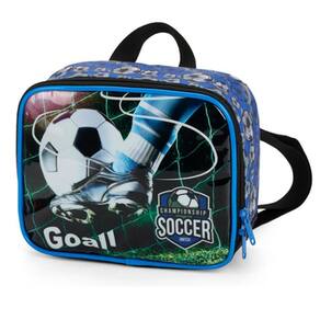 Fabricada em material de ótima qualidade, essa lancheira possui estampa de futebol em sua frente, fechamento em zíper e elástico traseiro para acoplar na mochila. Além disso, ela oferece dois modos de uso: uma alça de mão para segurar ou pendurar e duas alças posteriores com regulagem para as costas.