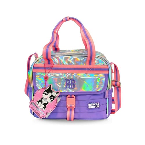 Características: - Confeccionados em material Holográfico - Alça Transversal ajustável - Alça de mão - Alça carona - Logo RB em metal - Zíper tratorado com puxador personalizado