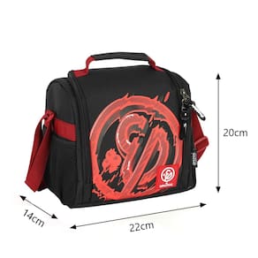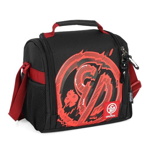 Características da Lancheira: - 1 Bolso Principal com bastante espaço - 2 Bolsos Laterais - Alça de mão reforçada na parte superior - Alça transversal ajustável - Fecho com zíper personalizado - Material: 100% Poliéster - Material Forro: 100% PVC