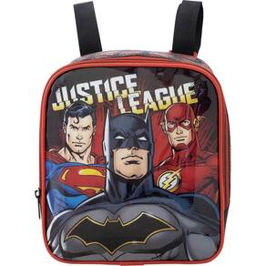 Linha X1/21 de Liga da Justiça. Lancheira com compartimento espaçoso forrada internamente com material que ajuda a manter o frescor dos alimentos por mais tempo. Fechamento em zíper. Alças reguláveis. Produto certificado.