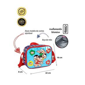 Lancheira Térmica Turma da Mônica LA41323 Prepare-se para viver aventuras incríveis com a lancheira térmica da Turma da Mônica Perfeita para os fãs da turminha mais querida da galera, essa lancheira é a companheira ideal para a escola, passeios e qualquer aventura. Características: Design Exclusivo Turma da Mônica: Com turma mais divertida dos gibis, essa lancheira vai deixar qualquer fã da Turma da Mônica super animado. Versatilidade: utilize como mochila com alça transversal ajustável para maior conforto, como lancheira de mão ou encaixe na mochila de rodinhas. Material de Alta Qualidade: Confeccionada com materiais resistentes e duráveis, garantindo longa vida útil. Isolamento Térmico: Mantém os alimentos frescos por mais tempo, ideal para lanches saudáveis e nutritivos. Alça Transversal Ajustável: Permite que a criança carregue a lancheira de forma confortável e prática. Alça de Mão: Facilitando o transporte da lancheira quando não estiver sendo Utilizado como mochila. Encaixe para Mochila de Rodinhas: Sistema prático e seguro que permite acoplar a lancheira na maioria das mochilas de rodinhas. Fechamento em Zíper: Garante a segurança dos alimentos e objetos dentro da lancheira. CUIDADOS: -guarde em um local seco e arejado evitando locais úmidos. - Evite colocar excesso de peso no produto para não forçar os zíperes e costuras. - Proteja os objetos cortantes e/ou pontiagudos evitando o contato direto com o produto. - Evitar altas temperaturas. - Cores claras poderão manchar quando em contato com outros objetos ou roupas de cores pigmentadas. DICAS DE LIMPEZA: - Para a limpeza utilize apenas pano úmido com sabão neutro. - Não deixar de molho e secar a sombra. Palavras chaves: Marca: Não Informado