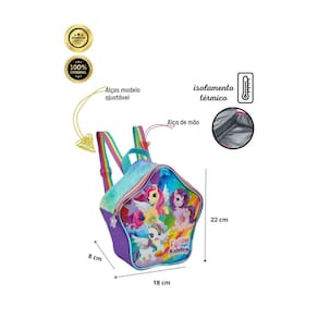 Confeccionada em Poliéster Isolamento térmico Alça de mão e de costas Design exclusivo Puxadores personalizados Fechamento em zíper Medidas aproximadas: Altura: 22 cm Largura: 8 cm Comprimento: 18 cm CUIDADOS: - Guarde em um local seco e arejado evitando locais úmidos. - Evite colocar excesso de peso no produto para não forçar os zíperes e costuras. - Proteja os objetos cortantes e/ou pontiagudos evitando o contato direto com o produto. - Evitar altas temperaturas. - Cores claras poderão manchar quando em contato com outros objetos ou roupas de cores pigmentadas.