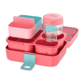 Lancheira thermos com 8 peças bpa free bento box coral