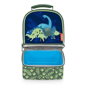 THERMOS Lancheira com compartimento duplo não licenciada, Dinosaur Kingdom - Reduza o desperdício e economize dinheiro embalando o almoço do seu filho em um kit de almoço reutilizável da marca THERMOS - 100% livre de PVC com forro de PEVA - Isolamento de espuma de polietileno de célula fechada de qualidade superior - Alça de transporte confortável e acolchoada - Gráficos detalhados impressos em tela