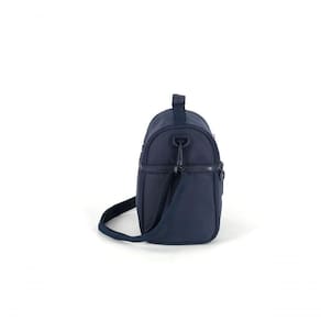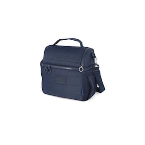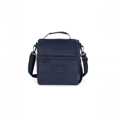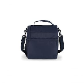 Conta com bolsos laterais livres, alça transversal removível, zíper personalizado e logo em metal, garantindo durabilidade e estilo. Seu grande diferencial é ser um modelo duplo, possuindo um compartimento principal e um compartimento menor superior, que oferecem organização prática para lanches, garrafinhas, utensílios e pequenos objetos.