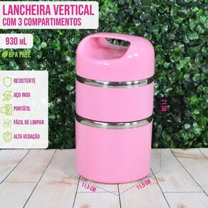 Lancheira Vertical 3 Compartimentos Inox Marmita Cor: Rosa Faça das suas refeições um momento especial em qualquer lugar com a nossa Marmita Tupperware Hermética em Inox, uma lancheira fitness de 3 andares projetada para atender às suas necessidades de alimentação saudável com muito estilo e praticidade.