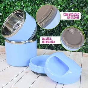 Lancheira Vertical 3 Compartimentos Inox Marmita Cor: Azul Faça das suas refeições um momento especial em qualquer lugar com a nossa Marmita Tupperware Hermética em Inox, uma lancheira fitness de 3 andares projetada para atender às suas necessidades de alimentação saudável com muito estilo e praticidade.