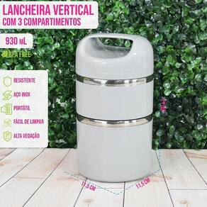 Lancheira Vertical 3 Compartimentos Inox Marmita Cor: Cinza Faça das suas refeições um momento especial em qualquer lugar com a nossa Marmita Tupperware Hermética em Inox, uma lancheira fitness de 3 andares projetada para atender às suas necessidades de alimentação saudável com muito estilo e praticidade.