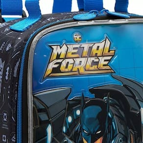 As cores e estampas da lancheira Metal Force, da franquia Liga da Justiça, combinam perfeitamente com as da mochila, fazendo um kit espetacular. Possui forro térmico para manter os alimentos frescos e puxador personalizado. Conta com um bolso principal espaçoso, ideal para lanches e snacks.