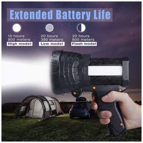 Uma lanterna ultrabrilhante para serviço pesado a luz LED Cree 2 superclara de 6000 lúmen máx. Gera um feixe de foco brilhante cuja distância de iluminação é superior a 2.600 pés , 800m. A duração da bateria é superior a 20 horas. Possui 3 configurações adaptáveis Alto , Baixo , Flash pressione e segura o botão por 3 segundos. Apenas esta lanterna recarregável a bateria é suficiente para lidarmos com todas as trevas. Luz lateral de inundação extra As 24 contas de led são distribuídas uniformemente na lateral do corpo da lanterna de alto lúmen. Se você precisa ver algo de perto ao consertar, trabalhar, ler, acampar, nossa lanterna de inundação suave YIERBLUE é perfeita enquanto a maioria das luzes fortes machucarão seus olhos. Você pode usá lo como uma lanterna de acampamento. Possui 3 configurações adaptáveis Alto , Baixo , Vermelho e Azul pressione e segura o botão por 3 segundos. Vida útil prolongada da bateria pare de procurar baterias que nunca estão lá quando você precisa delas. Nossa lanterna grande possui 3 baterias recarregáveis de íon de lítio 18650 de longa duração 10000mAh, que podem ser recarregadas mais de 1000 vezes. E nosso refletor de emergência também pode servir como um banco de energia para smartphones ou dispositivos móveis em emergências, trazendo a você muita comodidade para suas viagens ao ar livre. Super durável e portátil Recuse se a usar materiais de qualidade inferior. Nossas lanternas de alta potência feitas de material ABS de nível militar resistente a impactos e liga de alumínio podem proteger o sistema contra quedas e impactos durante o uso. É uma ferramenta de iluminação perfeita para caminhadas, camping, vela ou caça. Inclui tripé ajustável e dobrável para uso com as mãos livres Marca: Não Informado