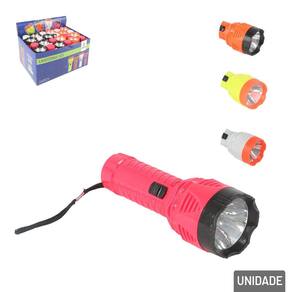 Lanterna à Bateria LED Color Lanterna Led de Plástico. Ideal para usar no escuro. Utiliza 3 Baterias (Já Inclusas). Disponível nas cores, Vermelho, Amarelo, Laranja e Branco.\nEspecificações:\nMarca : SUTT\nTipo de material : Plátsico E Componentes Eletricos\nCores ou Estampa : Color\nDimensões do Produto : 10,5 X 3,5 X 3,5 CM\nDimensões da Embalagem : 10,5 X 3,5 X 3,5 CM\nPeso Bruto (Gramas) : 0.024