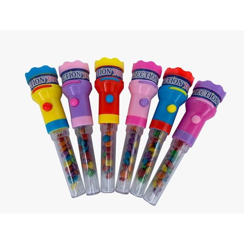 A Lanterna Animada é o brinquedo perfeito para iluminar e deliciar as crianças! Esta lanterna, ligada à parte superior de um tubo, vem repleta de balinhas sabor Tutti Frutti, proporcionando uma experiência única que combina iluminação e sabor.