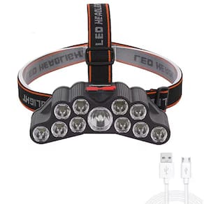 Lanterna Cabeça Gold Sports Holofote 11 Led Recarregável 4 Model Bateria de Lítio A Prova Água - Tamanho: Único / Cor: Preto / Gênero: Unissex