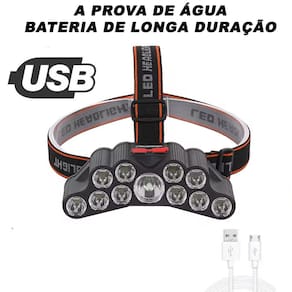 A lanterna possui faixa elástica ajustável para a cabeça, garantindo melhor fixação e conforto durante o uso. Seu design resistente à água ajuda na utilização em diferentes condições climáticas.