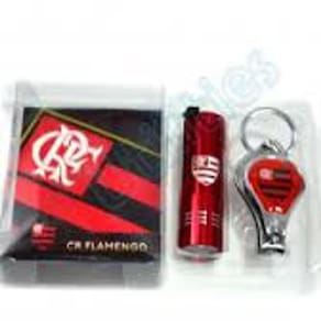 super jogo contendo uma lanterna com 9 lâmpadas na cor branca e um chaveiro de metal equipado com cortador de unha e abridor de garrafas, tudo isso customizado com com a cor vermelha do e marcado com o brasão. Material chaveiro: metal; material lanterna: plástico; funcionamento: 3 pilhas aaa não acompanha